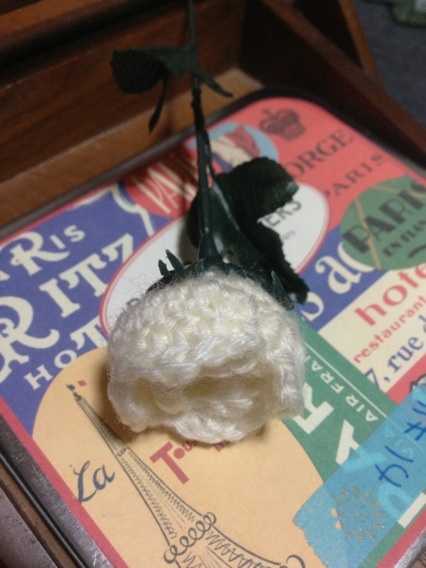 もったいない、と思い毛糸で白いお花を作りくっつけました!